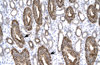Immunohistochemistry of paraffin-embedded Human gastric cancer tissue using CLDN8 antibody