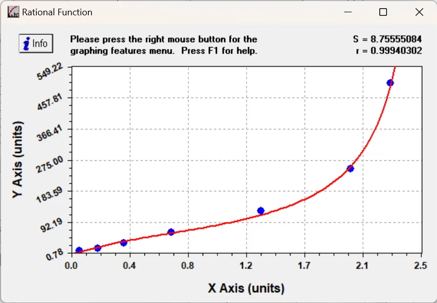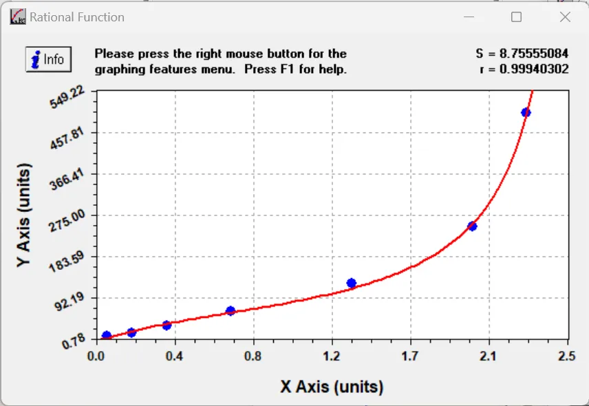 注意:选择系数(即“r”值)最佳的曲线方程进行运算。在下面的对话框中,右上角有一个“r”值。“r”值越接近 1,拟合度越好。