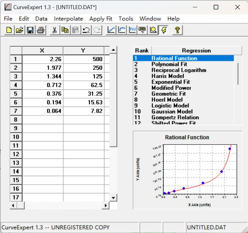 ( 软件“Curve Expert1.3”点击下载 ):下载软件