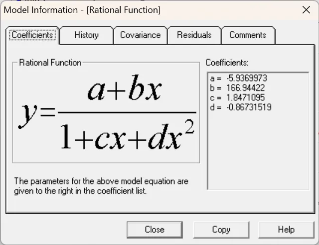 Rational Function: y=(a+bx)/(1+cx+dx^2)