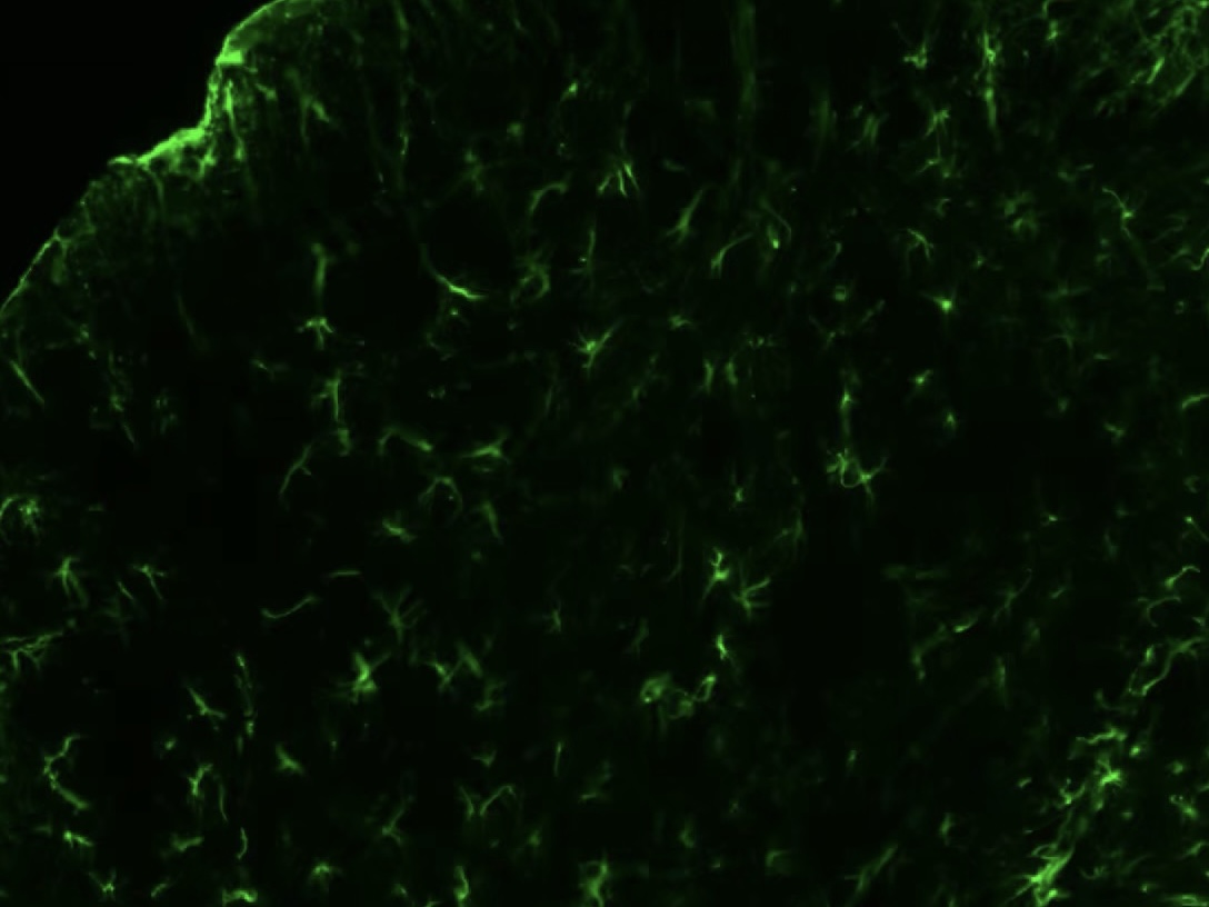 GFAP antibody works great on mouse spinal frozen sections! Our immunofluorescence signal is specific, astrocytes show distinct morphology, and the staining effect is very beautiful!